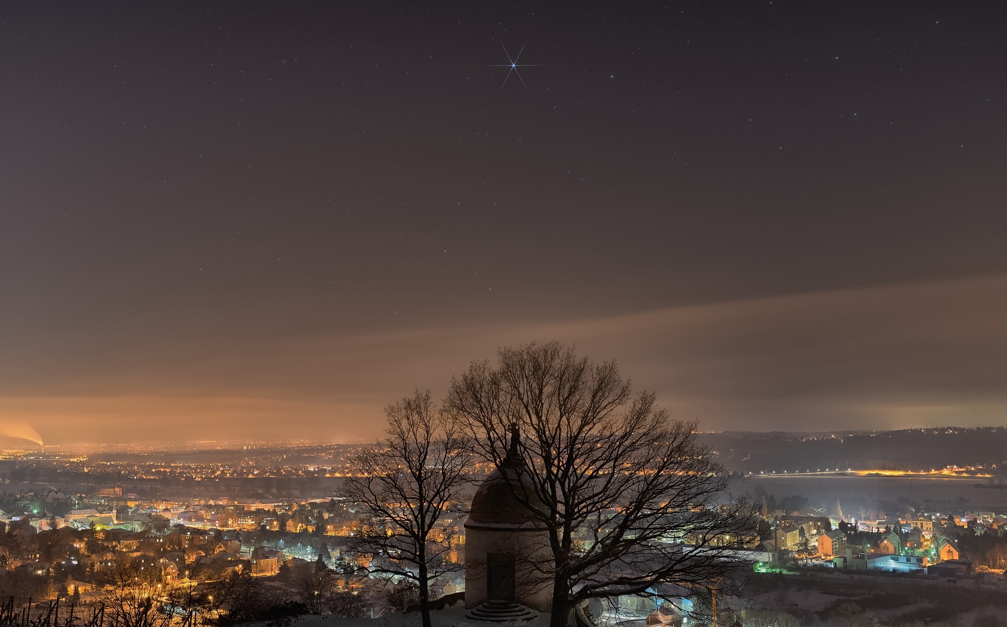 Sterne über dem lichtverschmutzen Elbtal