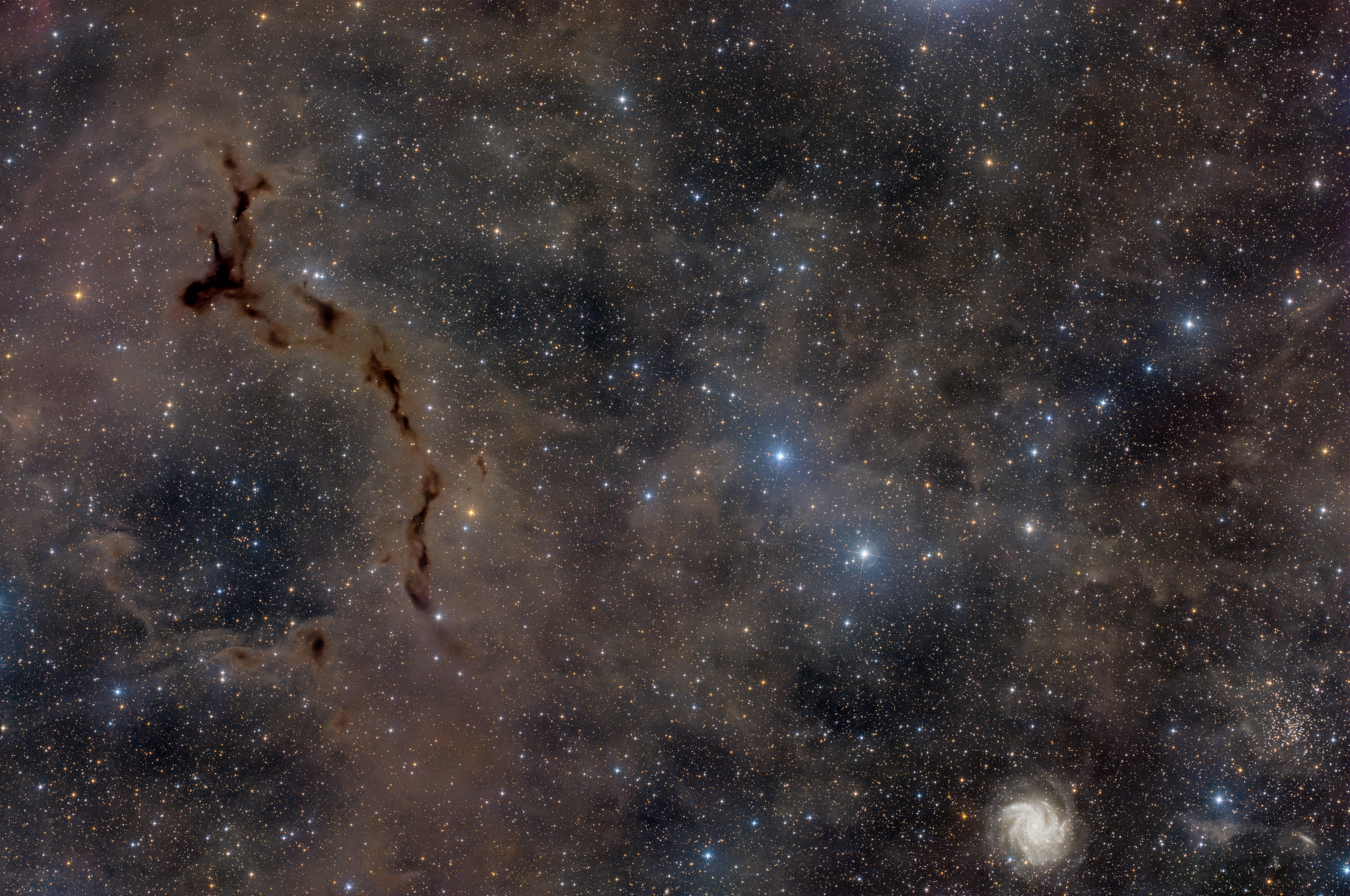 Seepferdchennebel (Dunkelnebel B150) und Feuerwerksgalaxie (NGC6946) im Cepheus