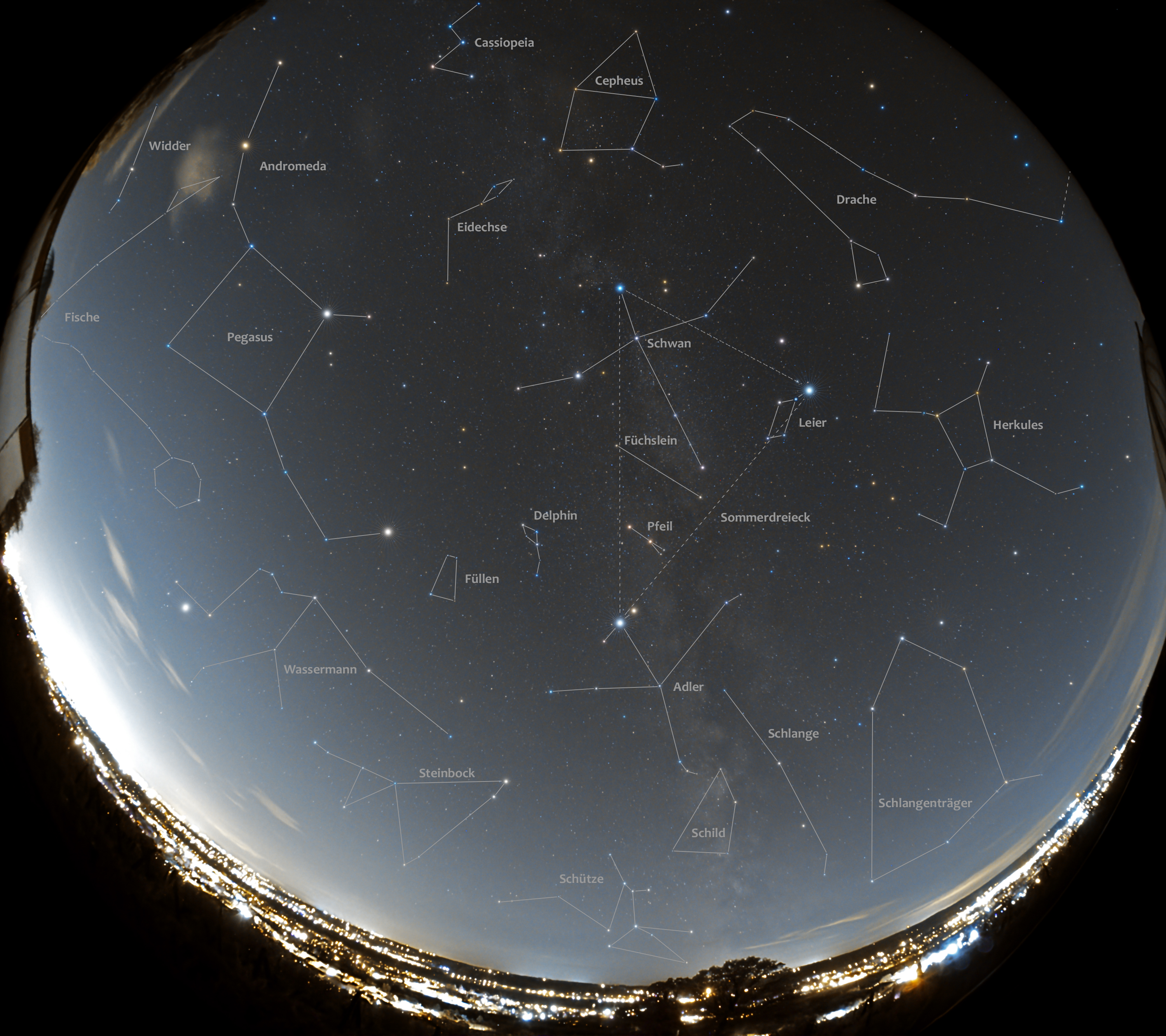 Spätsommersternhimmel mit Beschriftung