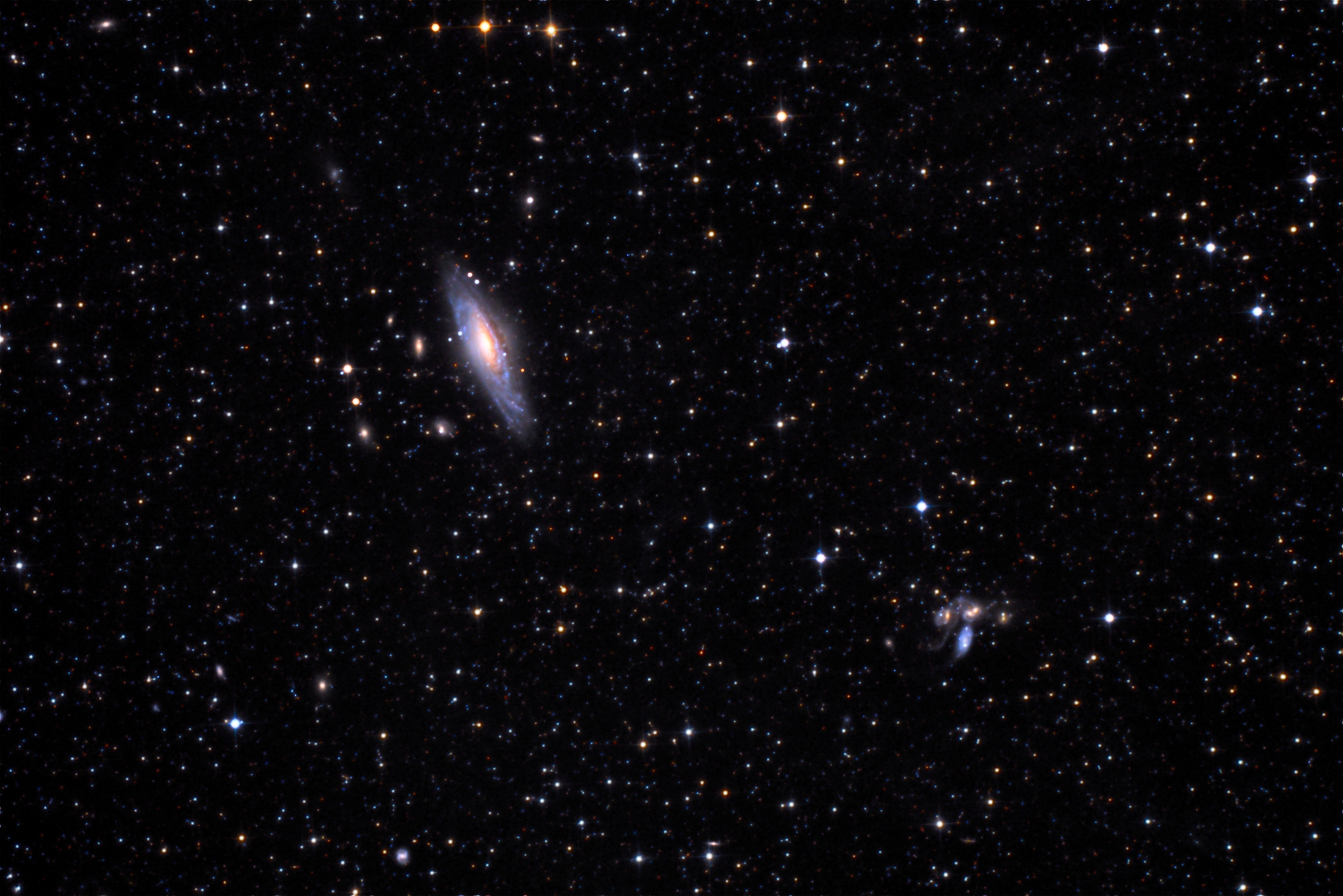 Rechts unterhalb ist noch eine bekannte Galaxien-Gruppe zu sehen, das Stephan's Quintett.