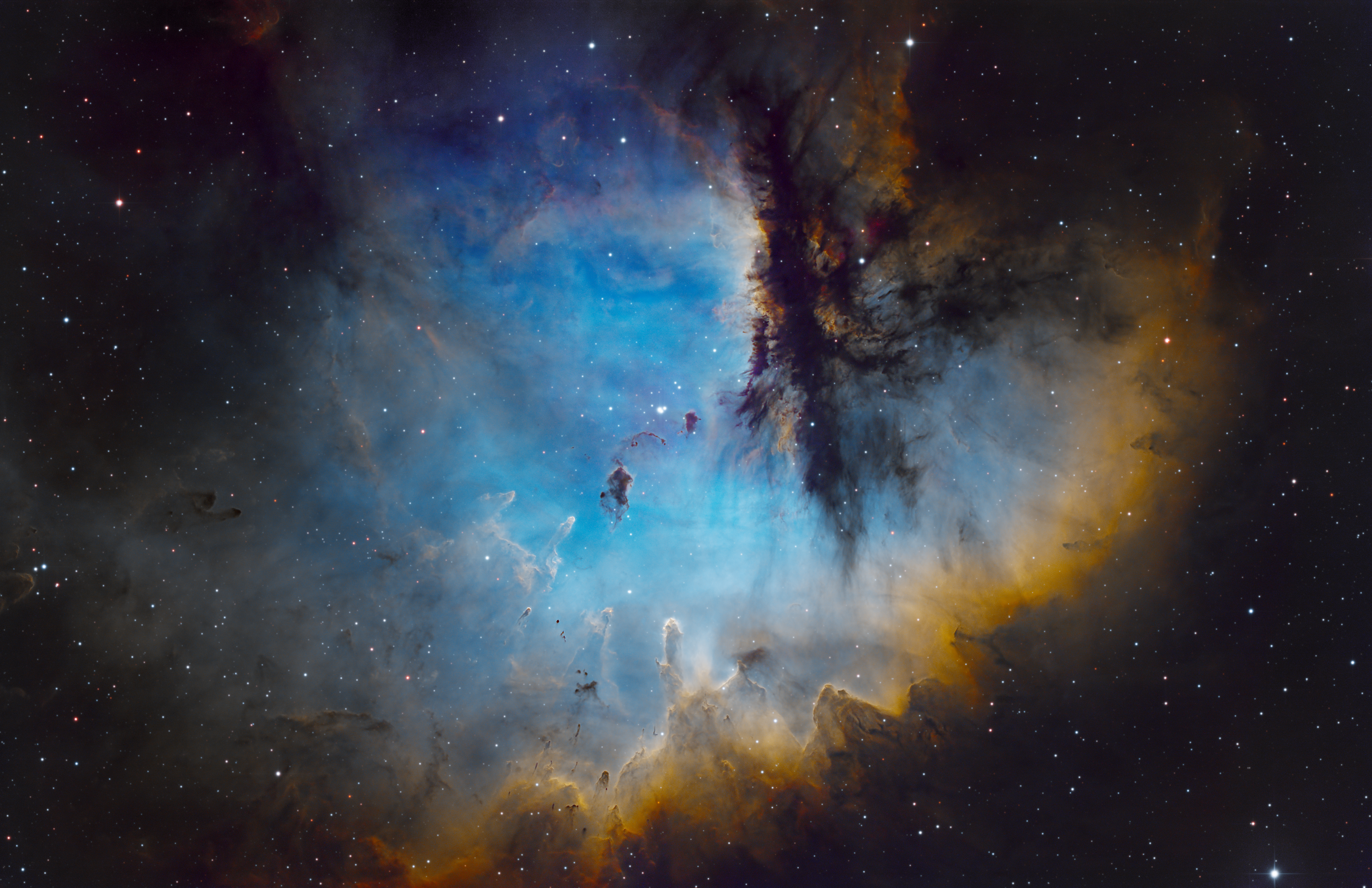 Insgesamt ist der Pacman-Nebel ein besonders schönes Beispiel für eine aktive Sternentstehungsregion und gibt Astronomen wertvolle Einblicke in die Prozesse, die bei der Geburt von Sternen und der Bildung planetarer Systeme eine Rolle spielen.