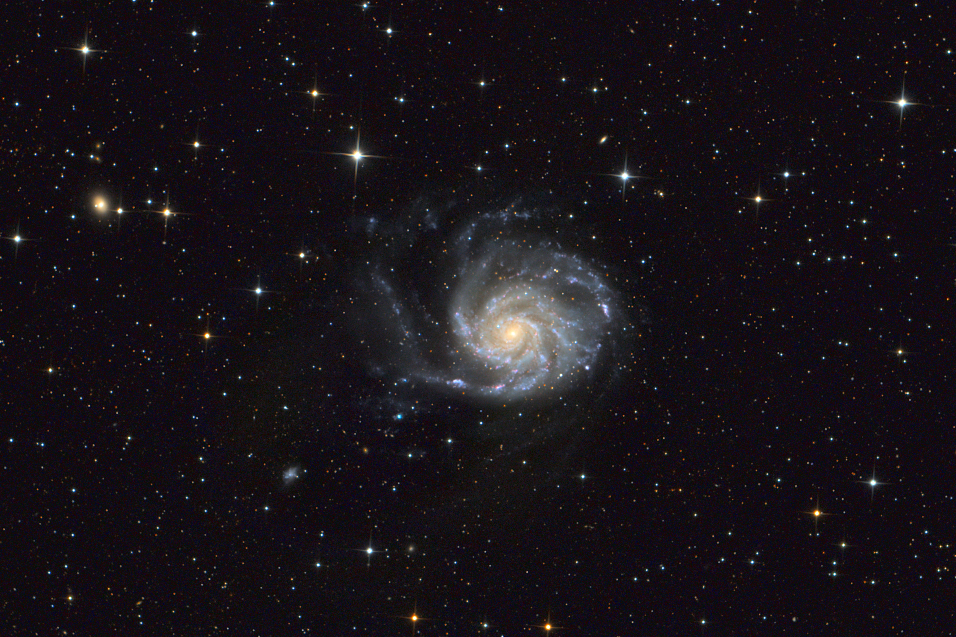 M101, auch Feuerradgalaxie genannt, befindet sich oberhalb des 1. und 2. Deichselsterns vom großen Wagen...